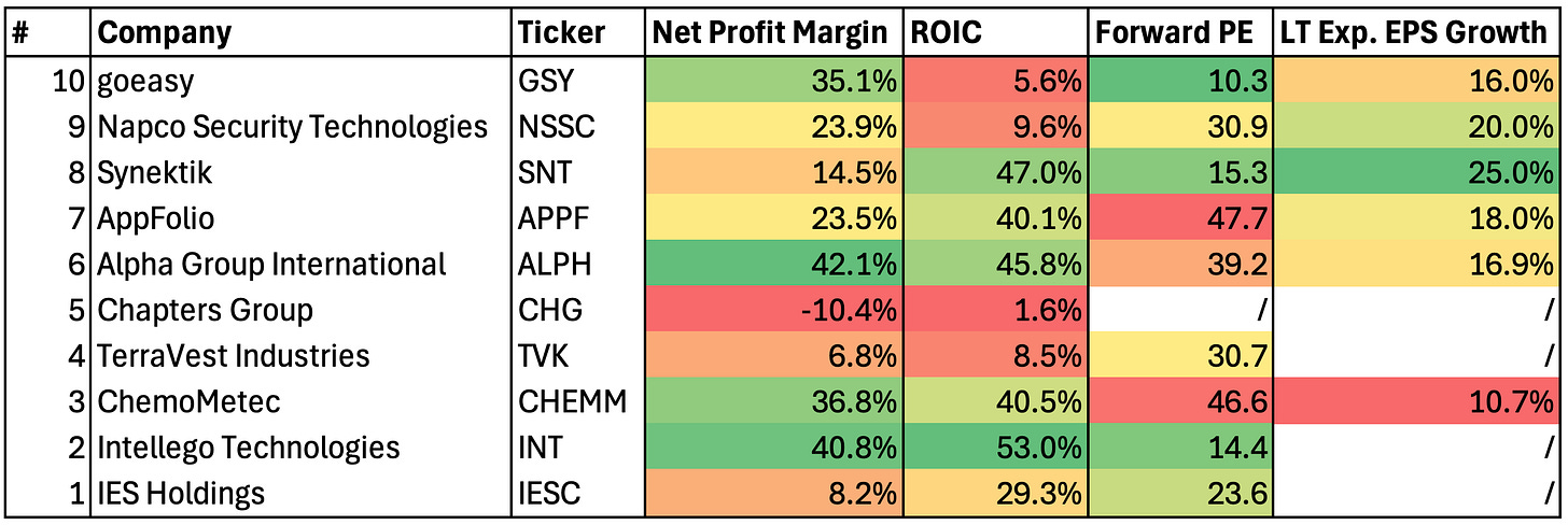 The list is based on the 10-year performance. Companies will be sorted from 10 to 1.
