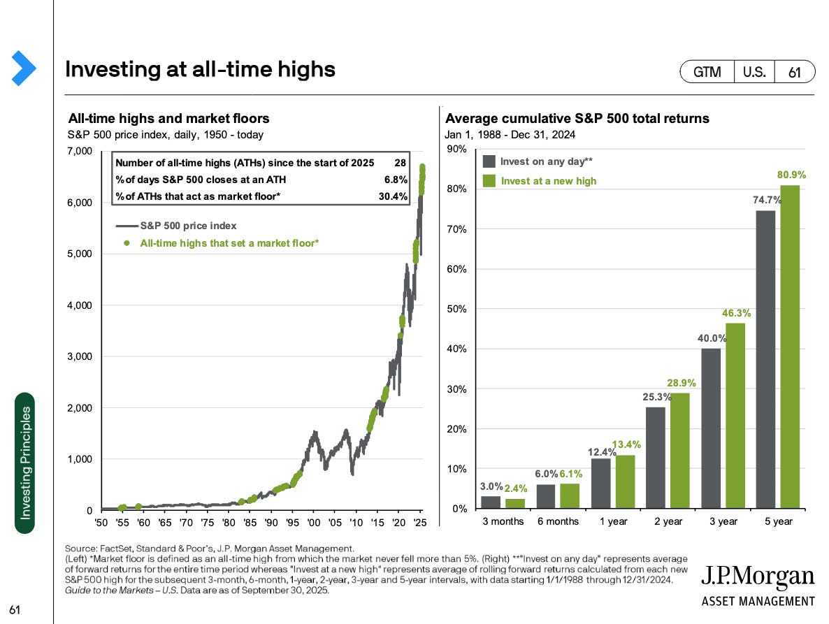 As you can see in the chart below, you actually slightly outperform the market by investing at all-time highs: