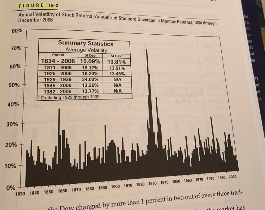 “The percentage of trading days when the Dow Industrials changed by more than 1% has averaged 23% between 1834 and 2006, or about once per week. “ – Jeremy Siegel