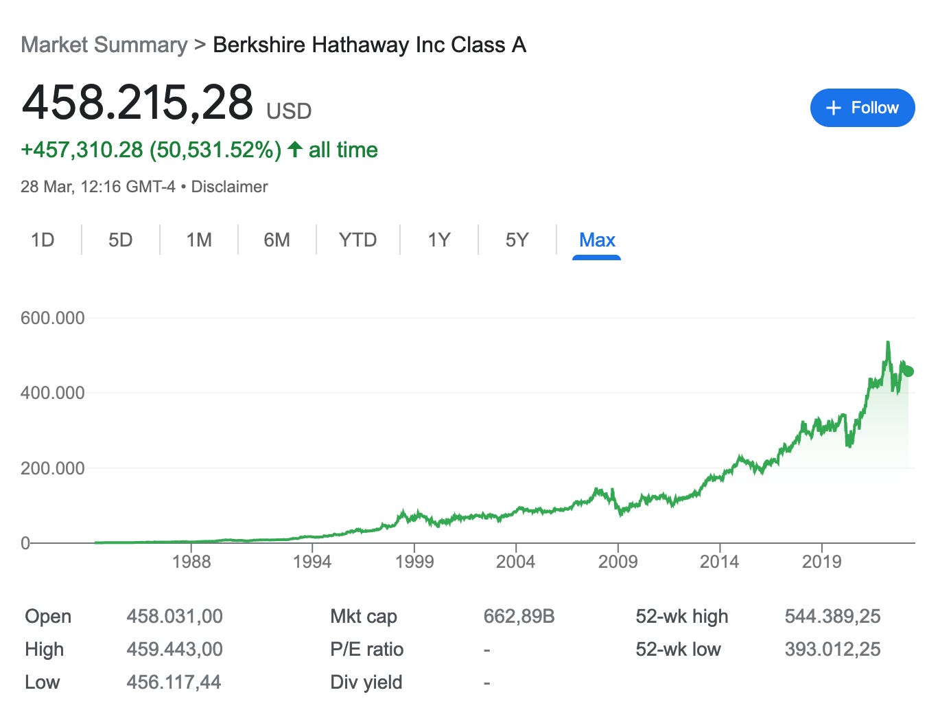 Since Warren Buffett took over Berkshire Hathaway in 1965, Berkshire compounded at roughly 20% per year.