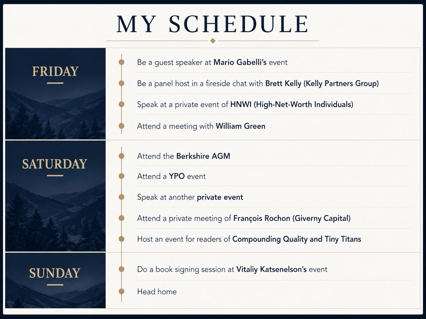 My schedule looks as follows: