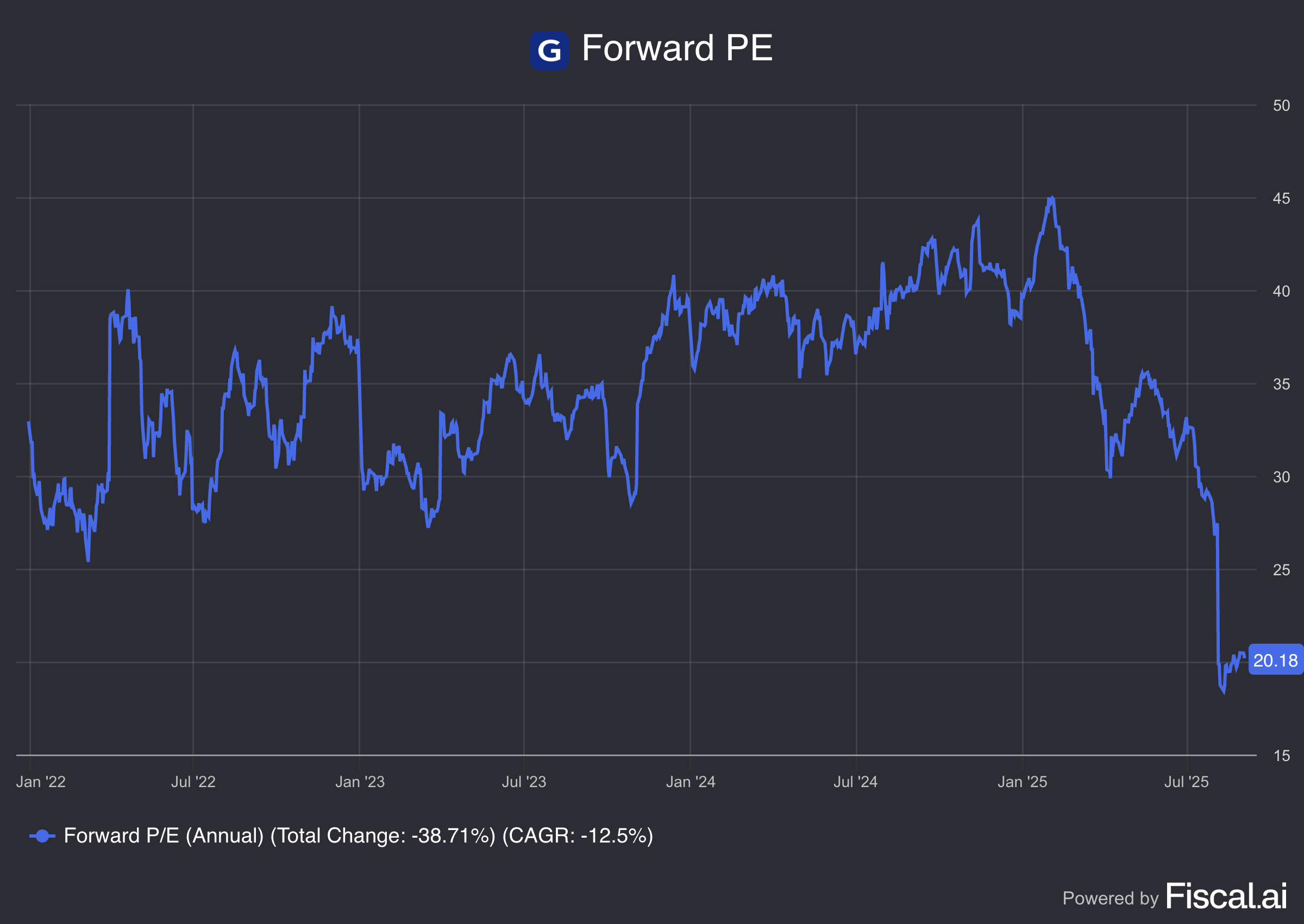 Gartner ($IT) is trading at its lowest valuation in four years: