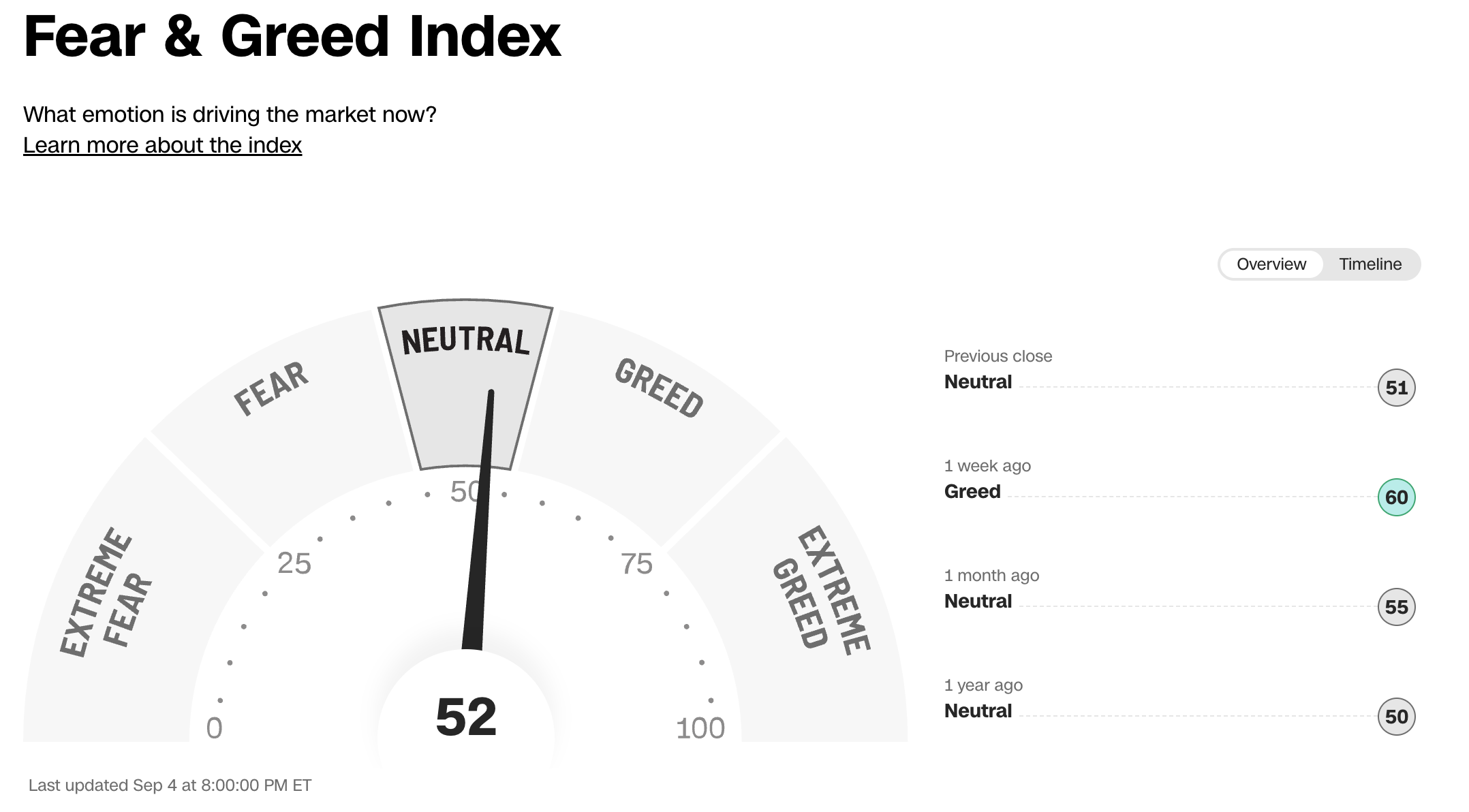 Investors are “Neutral” today according to the Fear & Greed Index:
