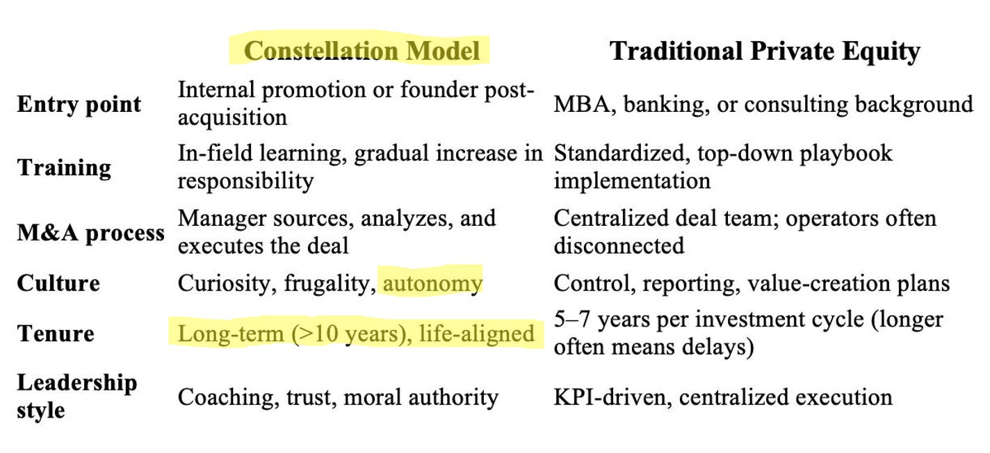 Unlike many other big conglomerates, Constellation has also decentralized capital allocation. This is something unique. Weâll come back to this point.