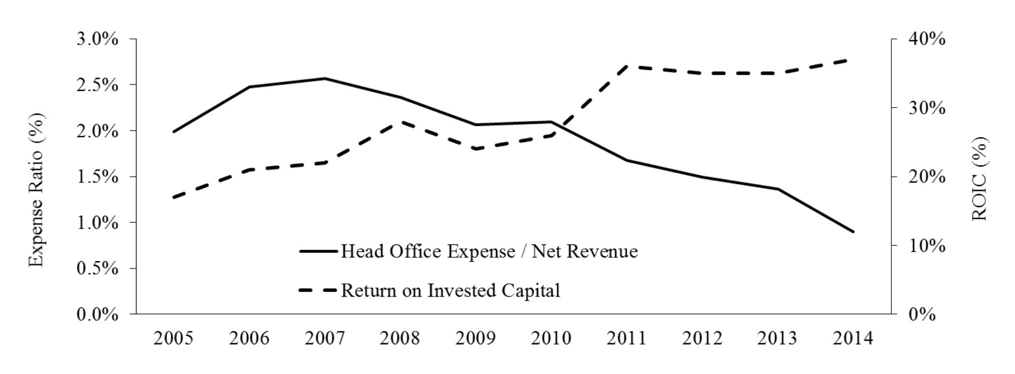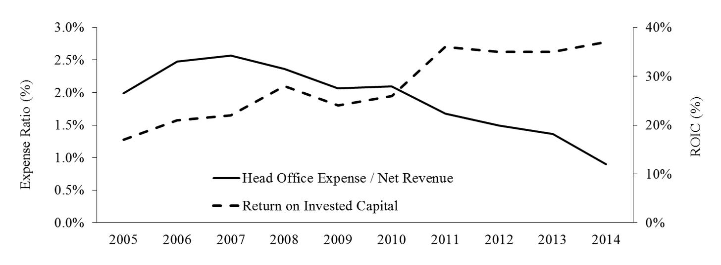 As you can see, Head Office Expense/Net Revenue is extremely low.