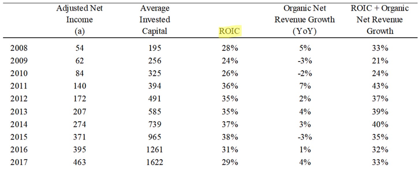 When doing the research for this investment case, I found something else that was extremely interesting. In 2002, Constellation’s ROIC was still negative. This is 7 years after the company was founded.