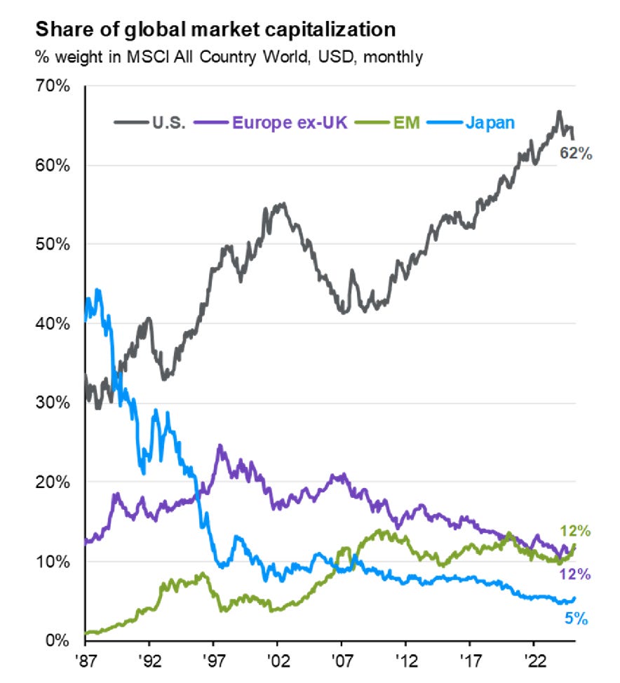 You can see that US stocks already make up a lot of the global market cap.
