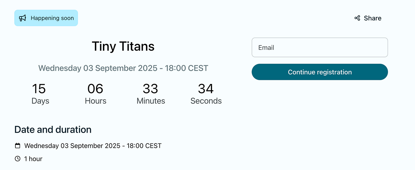 P.S. Tiny Titans will launch on the 16th of September. Don’t forget to add it to your calendar here.