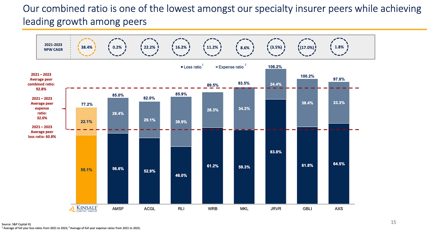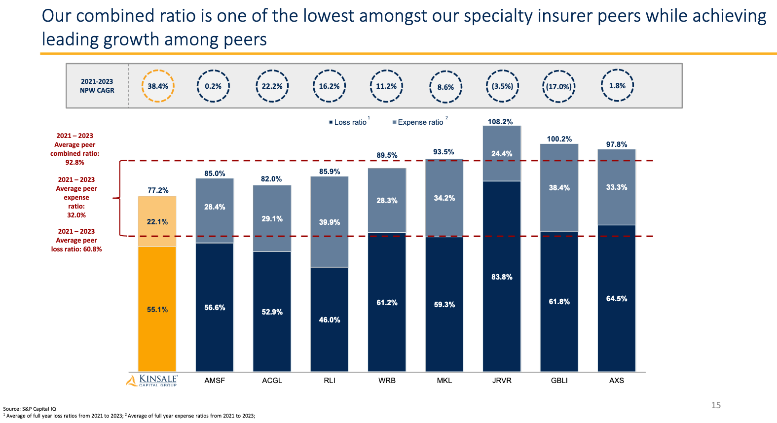 As you can see here, Kinsale Capital has the lowest combined ratio amongst its peers: