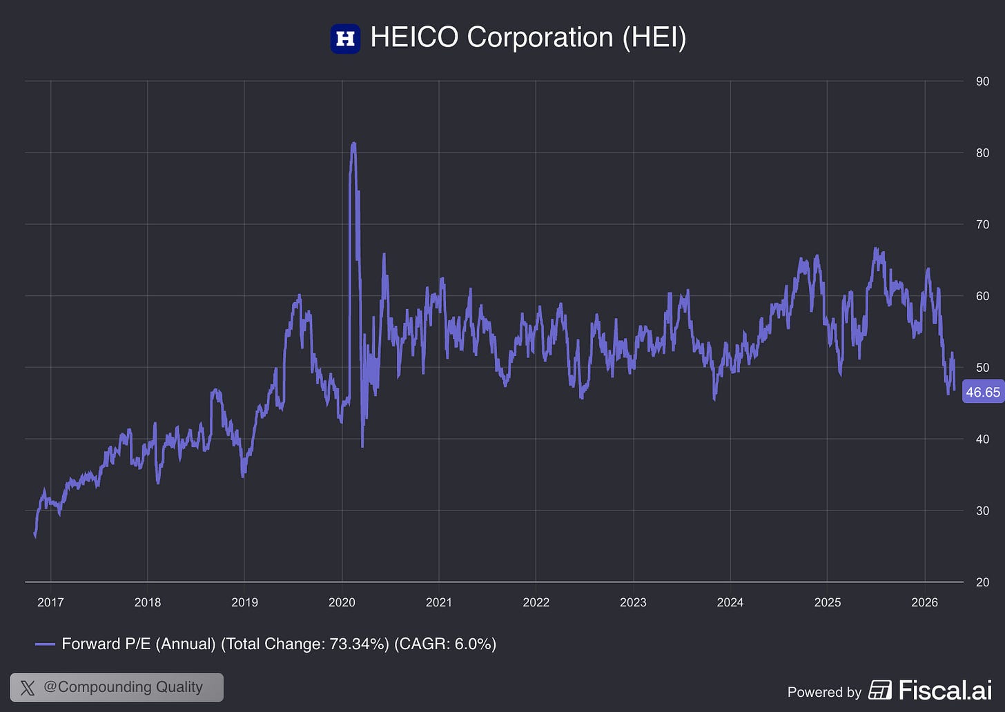They currently trade at a Forward PE of 46.7x.