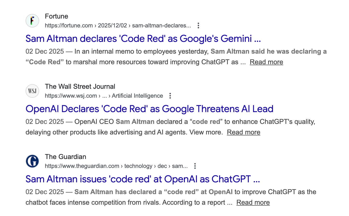OpenAI CEO Sam Altman has declared a “code red” as the company scrambles to catch up with Google’s Gemini 3 models.