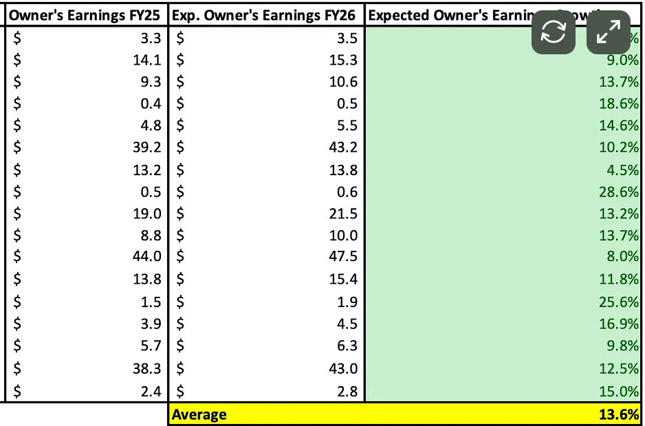 Our Portfolio is expected to grow Owner’s Earnings by 13.6% this year.