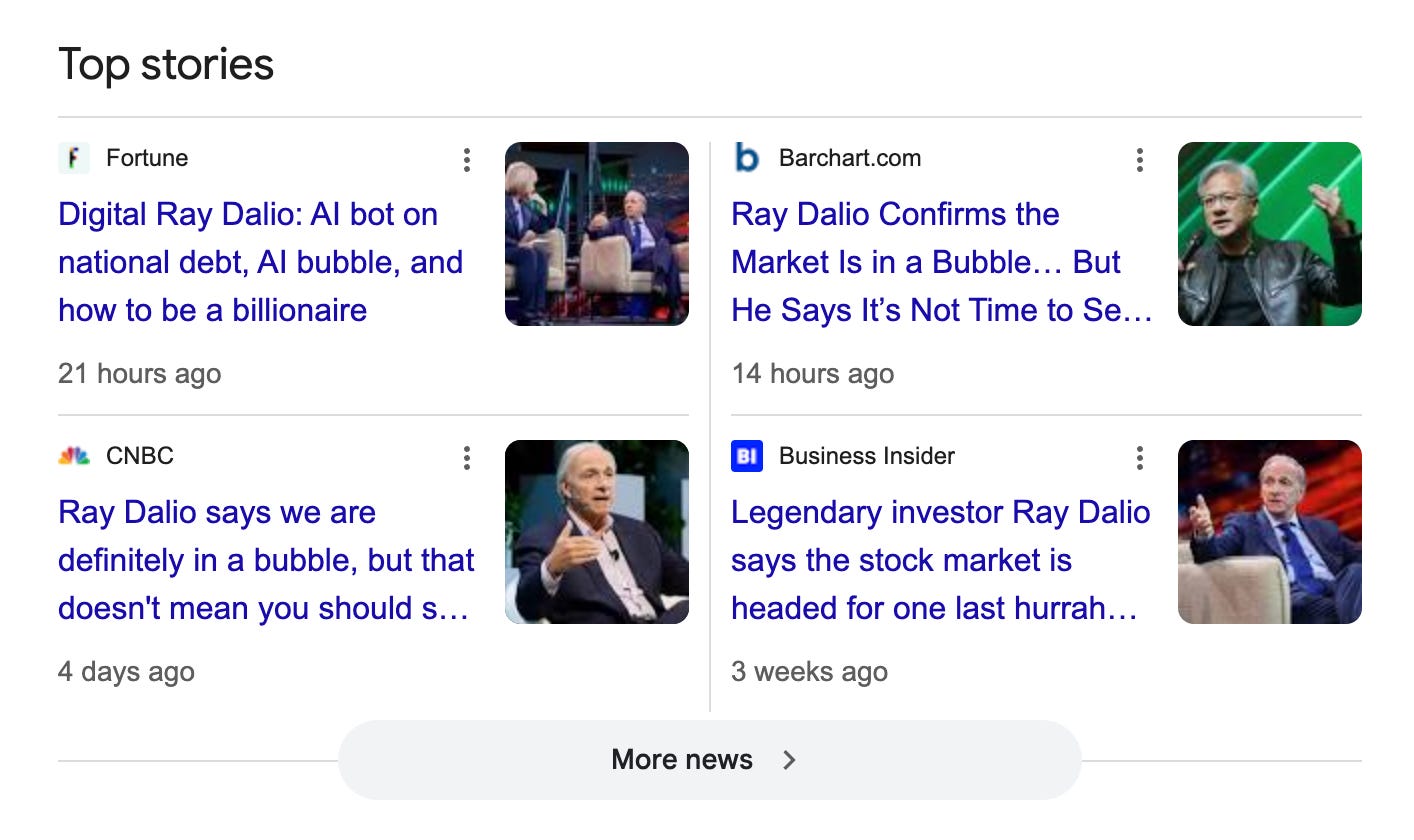 Legendary investor Ray Dalio recently said the market is currently in a bubble:
