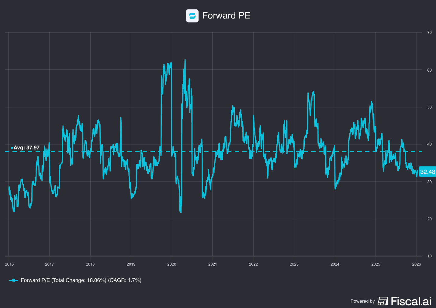 Forward PE: 32.5x (lower than its 10-year average? < 38.0x? ✅)