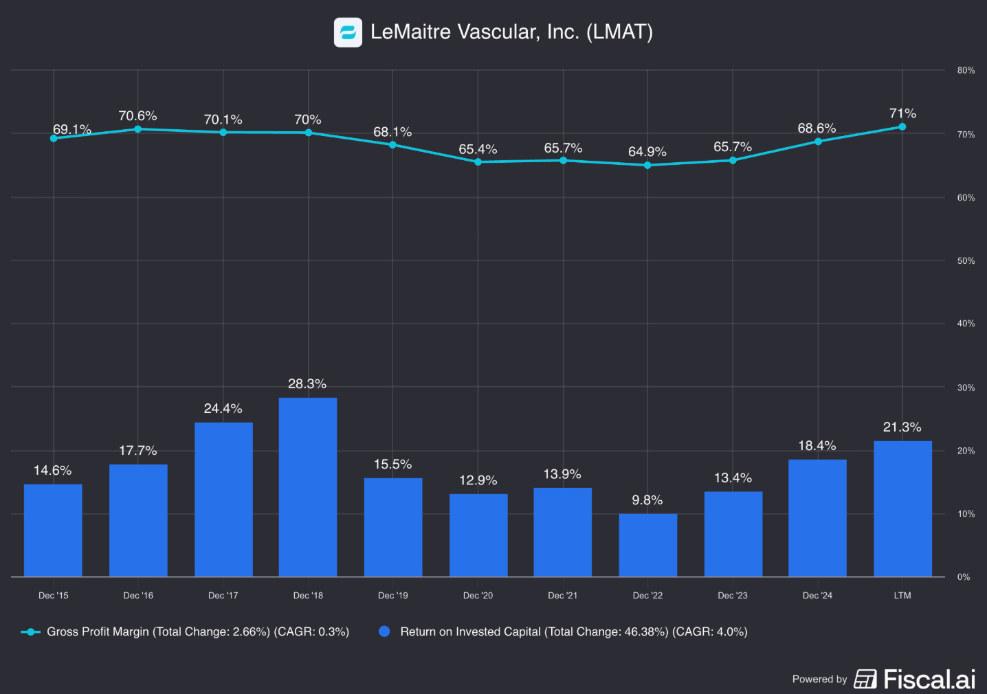Here’s an evolution of LeMaitre Vascular’s ROE and ROIC.