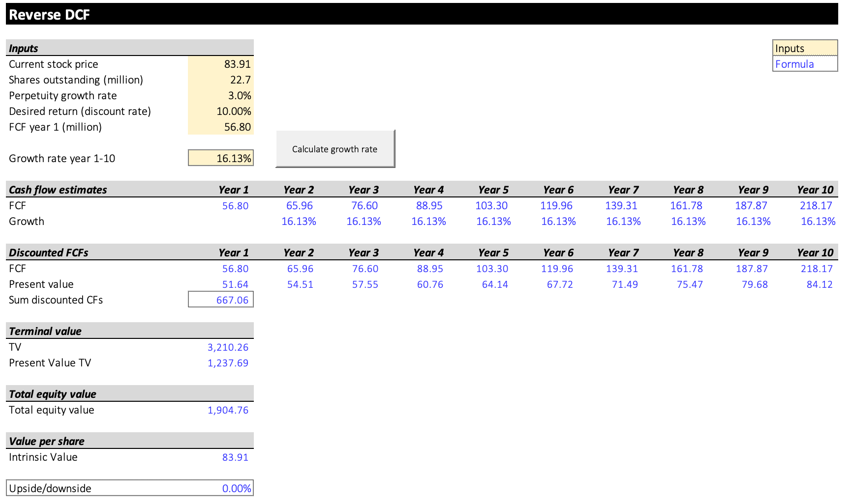 This is exactly what a reverse DCF does. As an investor, we don’t make assumptions. We simply look at what assumptions the market has made and see whether they are reasonable.