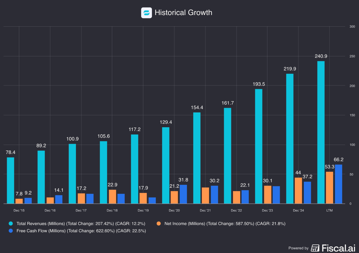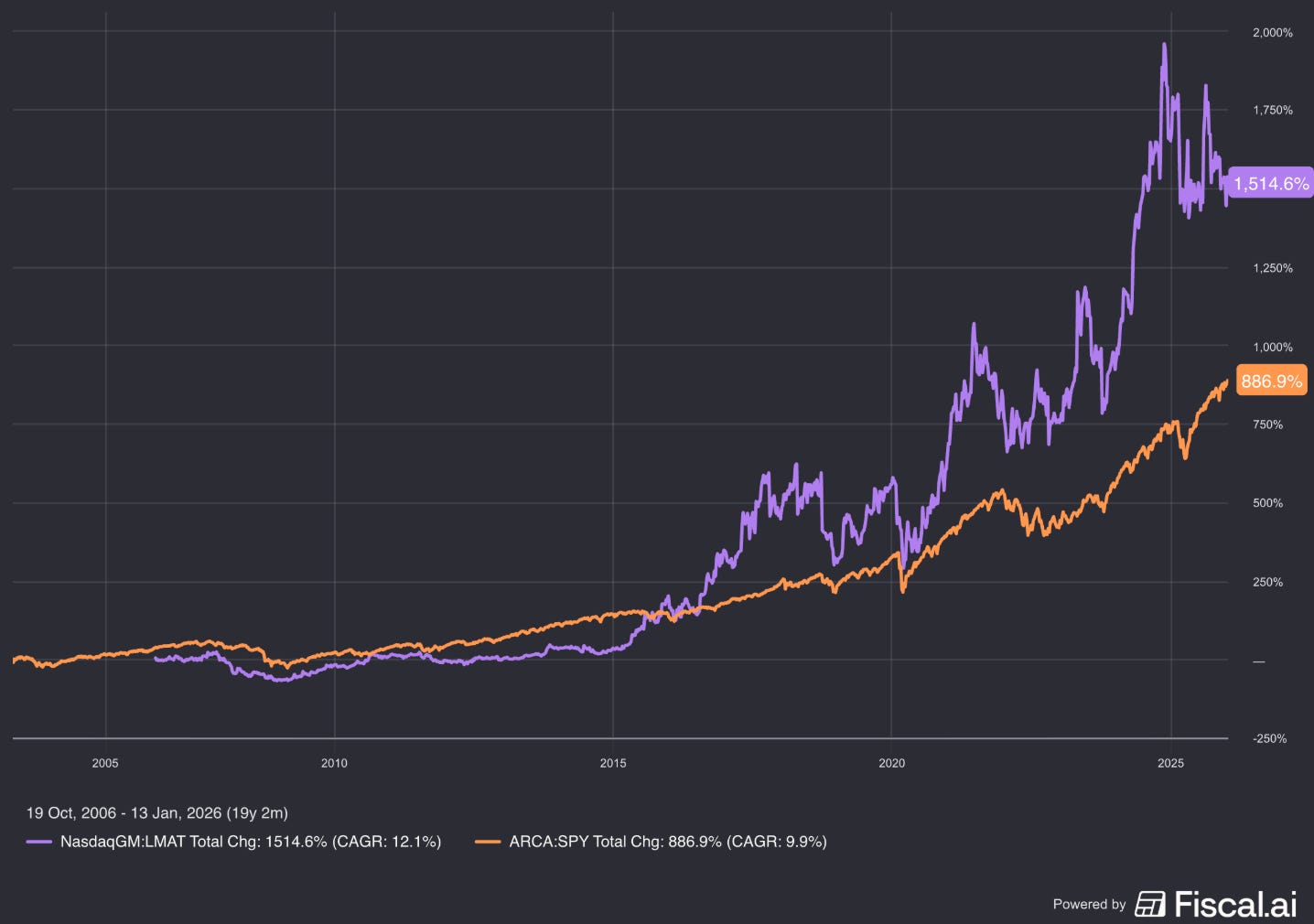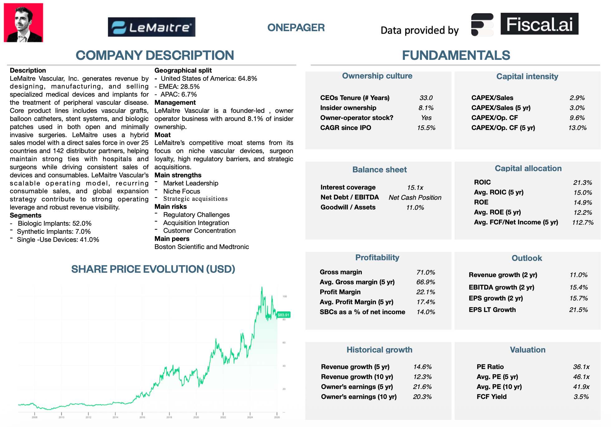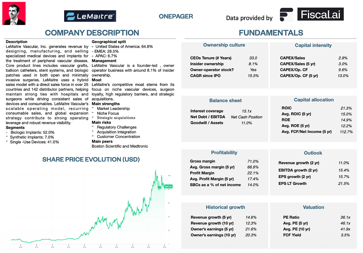Since the IPO in 2006, Lemaitre has returned over 1,500% to shareholders (CAGR: 15.5%).