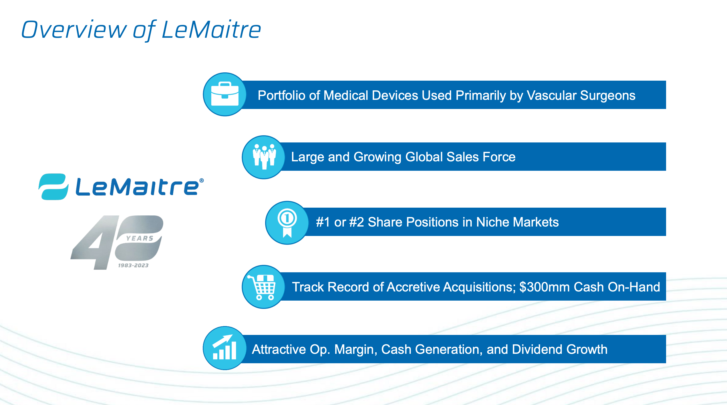 LeMaitre currently owns 30+ subsidiaries and continues to grow via a disciplined roll-up acquisition strategy, targeting small, profitable vascular device companies globally.