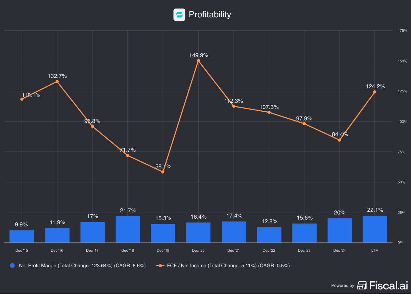 FCF/Net income: 124.2% (FCF/Net income > 80%? ✅)