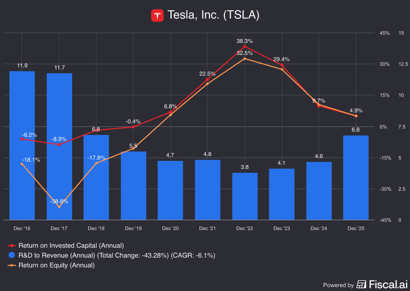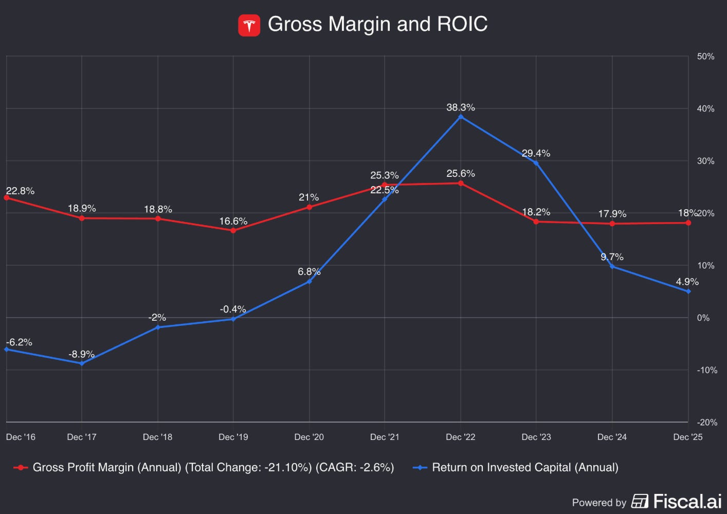 As we already mentioned, Tesla is heavily investing in projects that aren’t profitable yet. This brings the ratios down.