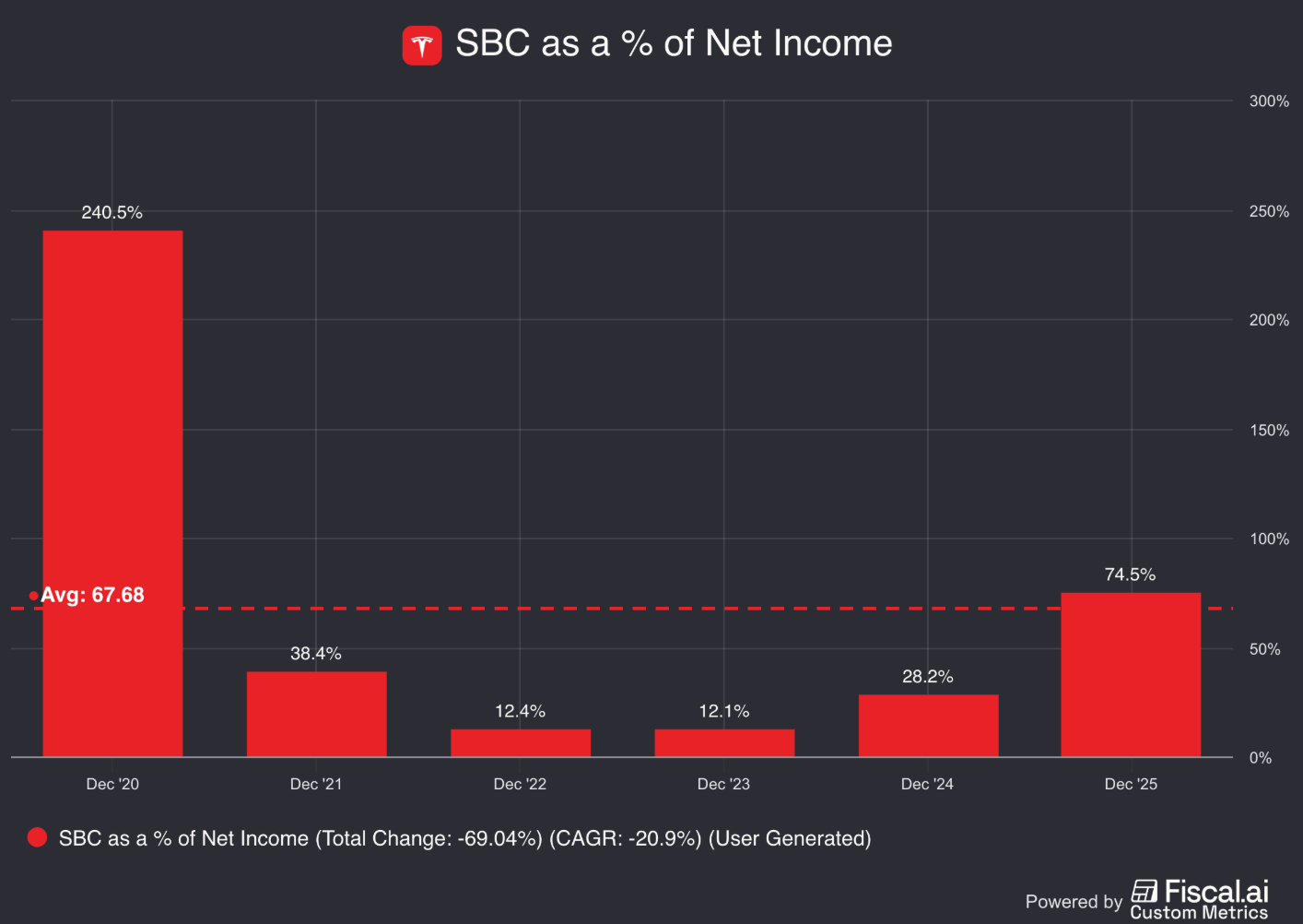 Avg SBC as a % of Net Income past five years: 67.7% (SBCs/Net Income < 10%? ❌)