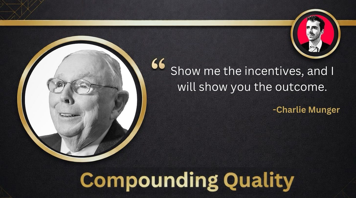 "Well, I think I’ve been in the top 5% of my age cohort all my life in understanding the power of incentives, and all my life I’ve underestimated it. And never a year passes that I don't get some surprise that pushes my limit a little farther." - Charlie MungerHere’s what to look for to make sure you invest with incentives on your side: