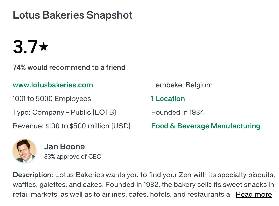 Lotus Bakeries also has a great culture.