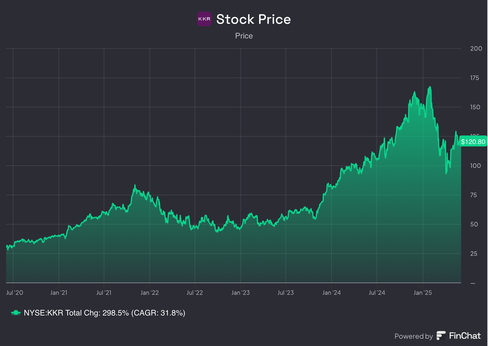 KKR is an American investment company. They use money from big clients (like pension funds) to buy and grow other companies.It’s interesting to see the market fully recovered from the Trump Tariffs, but KKR didn’t: