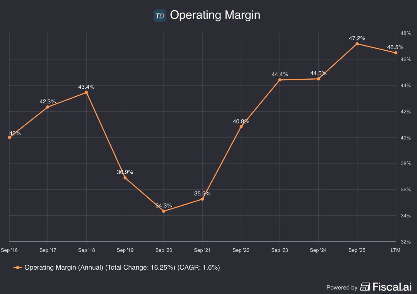 This extreme cost focus, in combination with pricing power, has translated into healthy operating margin expansion: