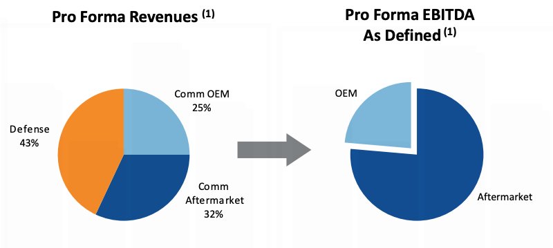 Commercial Aftermarket (32% of revenues): Airplanes are typically 30-50 years in the sky. Across this lifetime, some parts need replacement. This is what they call “the aftermarket”. It can be seen as recurring revenue. It’s a stable segment during downturns