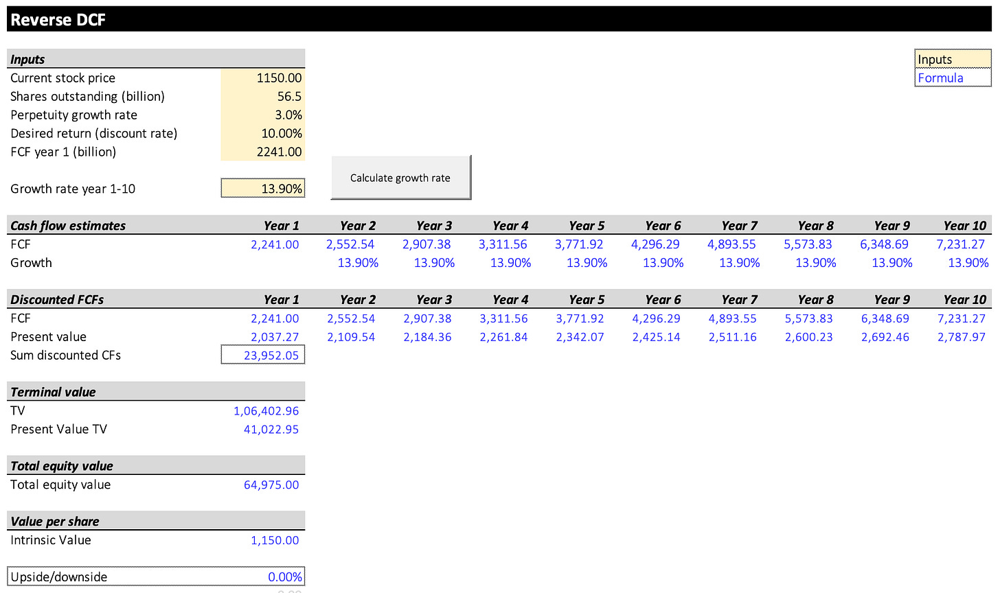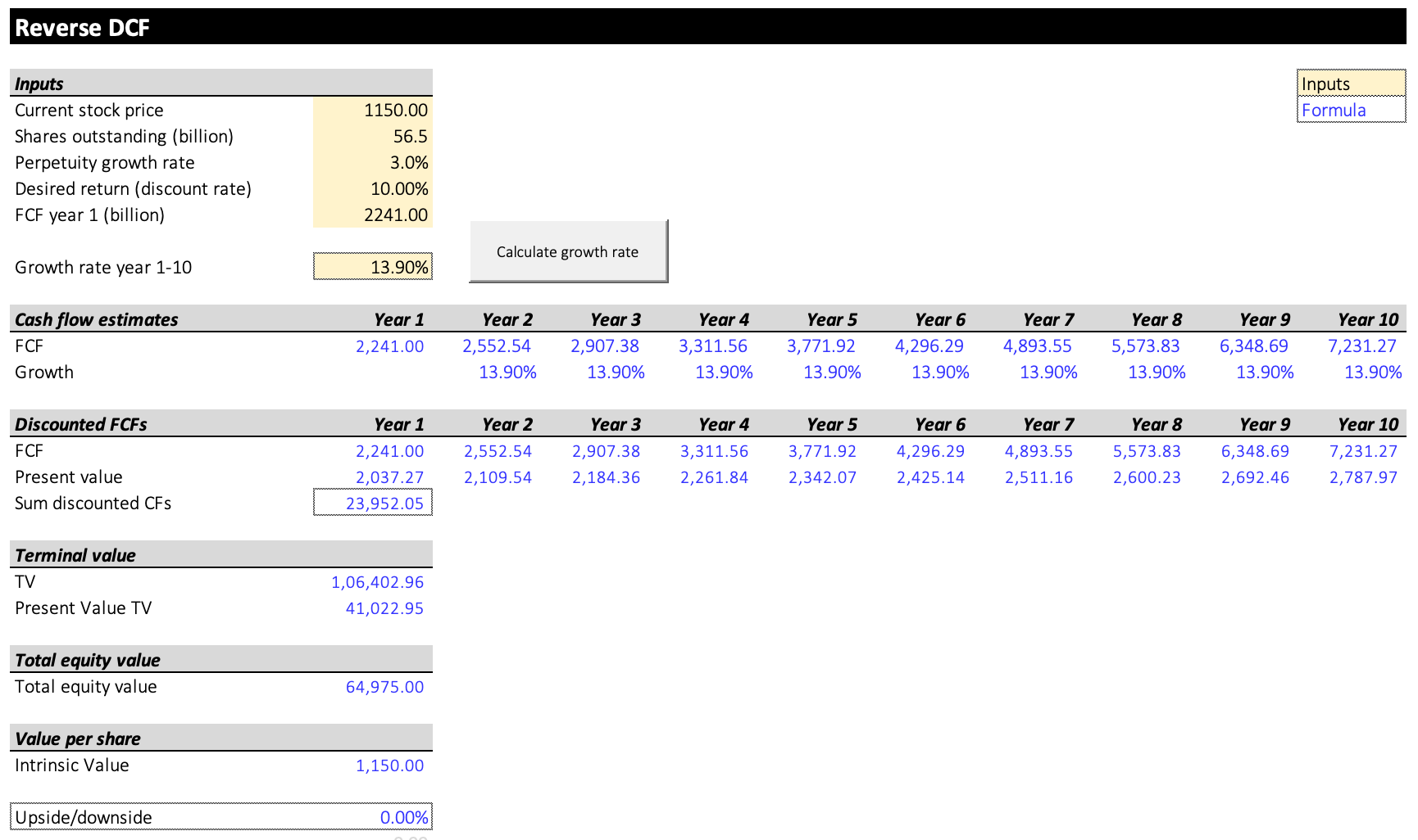FCF-Growth Reverse DCF: 13.9% (Realistic growth expectations? ❓)