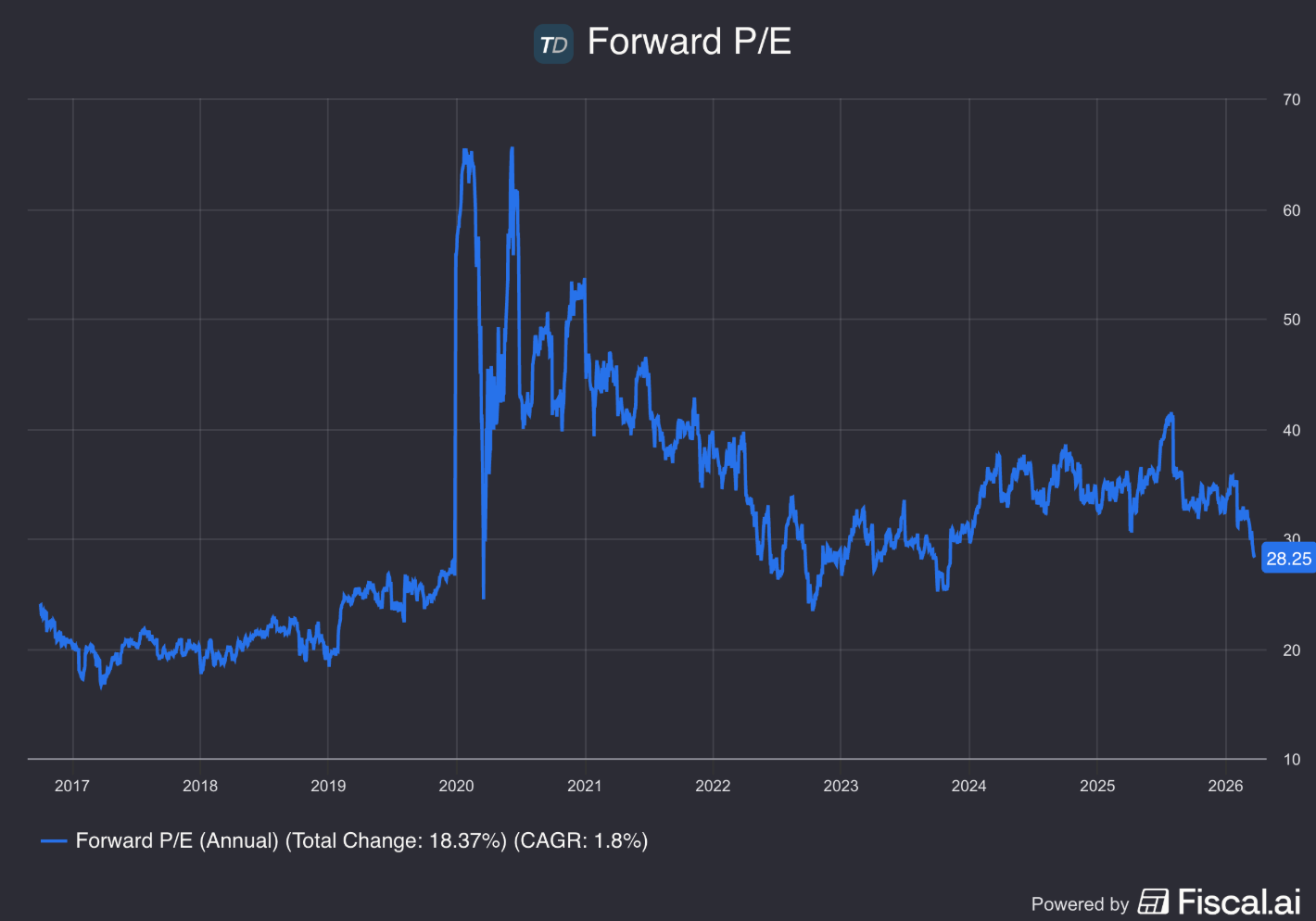 Forward PE: 28.2x (lower than its 5-year average? < 34.9x? ✅)