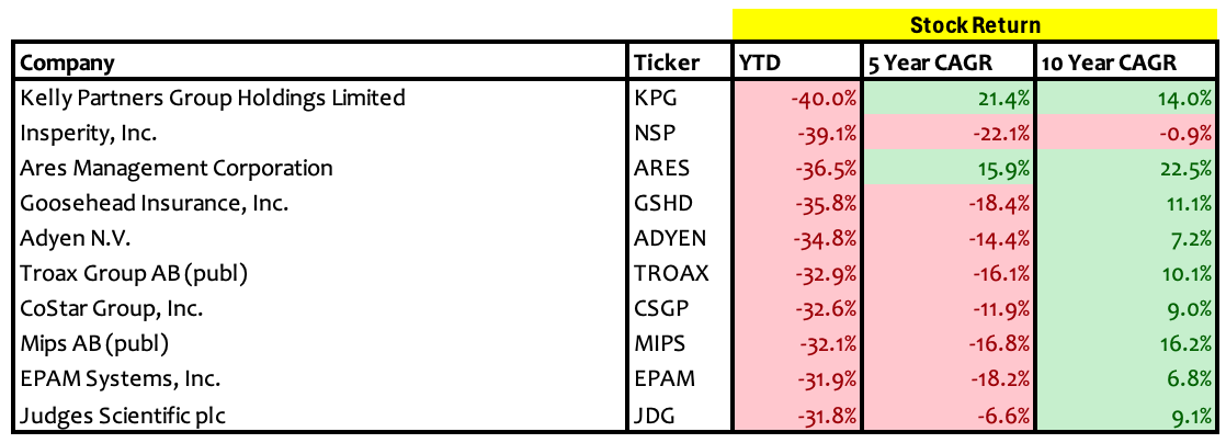 The 10 worst performers on our watchlist so far this year: