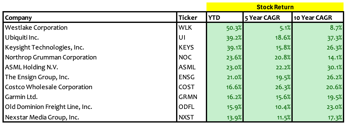 The 10 best performers on our watchlist so far this year: