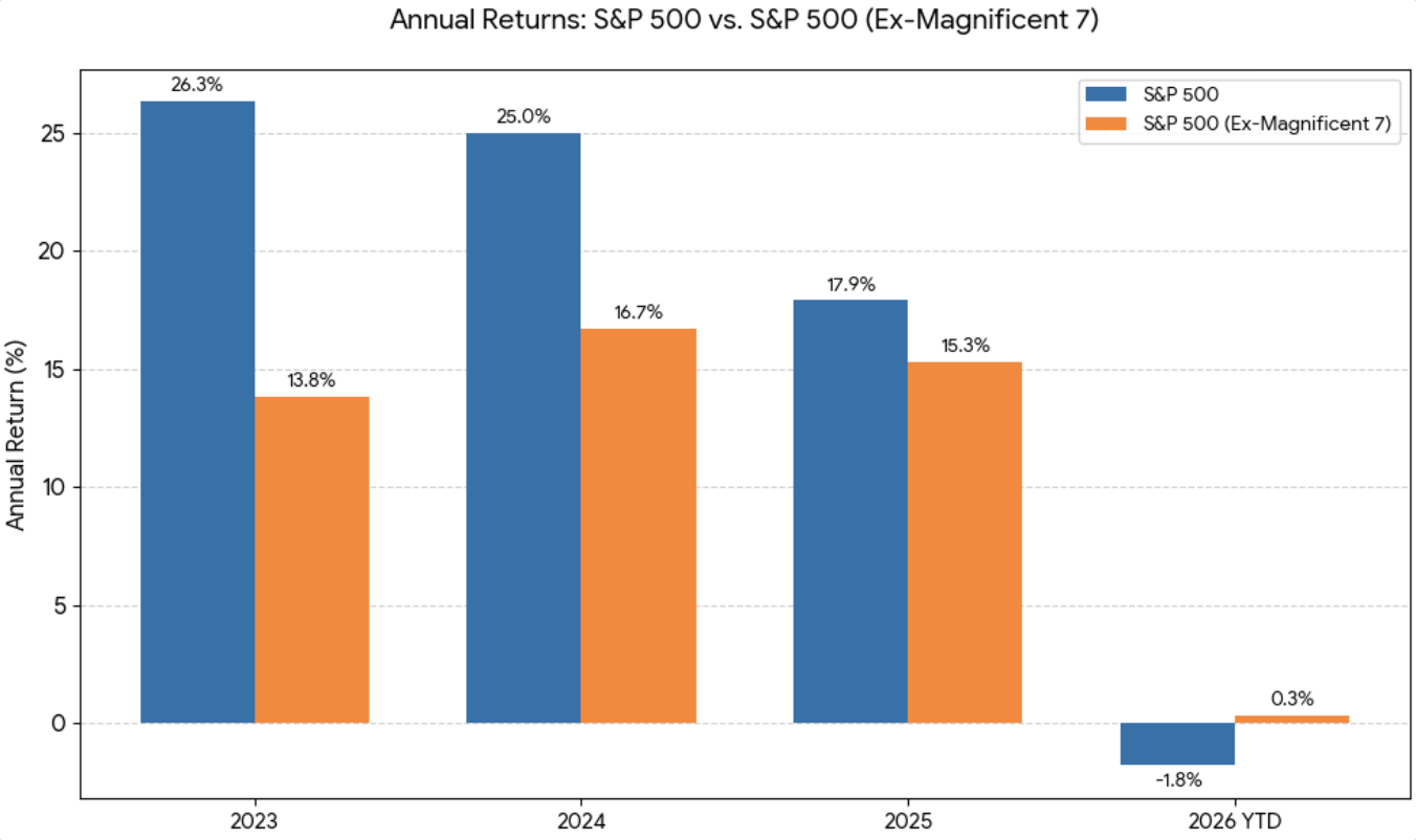 Excluding The Magnificent Seven, the returns of the S&P 500 over the past few years are much lower: