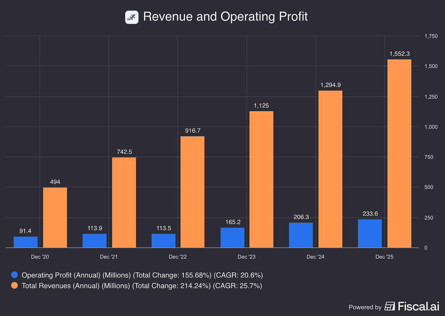 5-year Revenue (CAGR): +25.7%