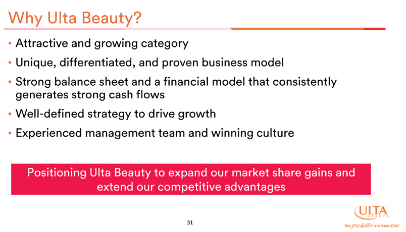 The full investment case of 33 pages tells you everything you need to know about Ulta Beauty.
